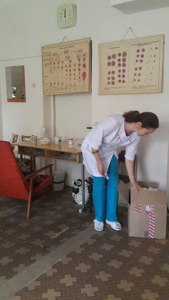 3 Paar Schuhe gingen an die Ärzte des Kyiwer Krankenhauses Nr17 und eine grosse Kiste ist in den Krankenhaus Mariupol geschickt worden.